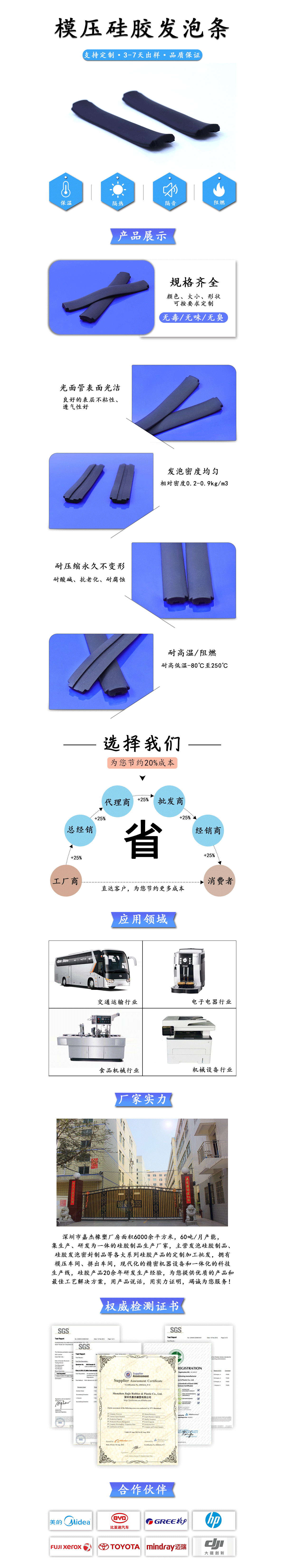 模壓硅膠發泡條: 采用優質硅膠原料制作,安全無毒無味、顏色、大小、形狀可按要求定制